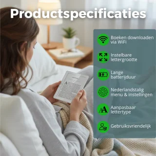 - Natuurlijk leescomfort — Het 6 inch E-Ink display heeft geen achtergrondverlichting, leest als papier en voorkomt vermoeide ogen die tablets of smartphones wél kunnen veroorzaken.