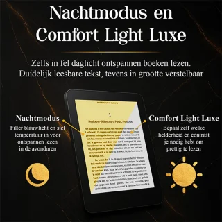 - Perfect voor avondlezers: Comfort Light Luxe en instelbare warmtekleur filteren blauw licht, en de handige nachtmodus draait het contrast om voor prettig lezen in het donker.