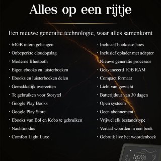 Voor de leesliefhebber die wil combineren: soepel en papierachtig lezen, onbeperkte opslag, en de mogelijkheid om ook te luisteren — zonder gebonden te zijn aan één ecosysteem. Of je nu veel reist, dagelijks leest of graag een uitgebreide collectie wilt meenemen: de Nova Pro geeft je maximale vrijheid en comfort.